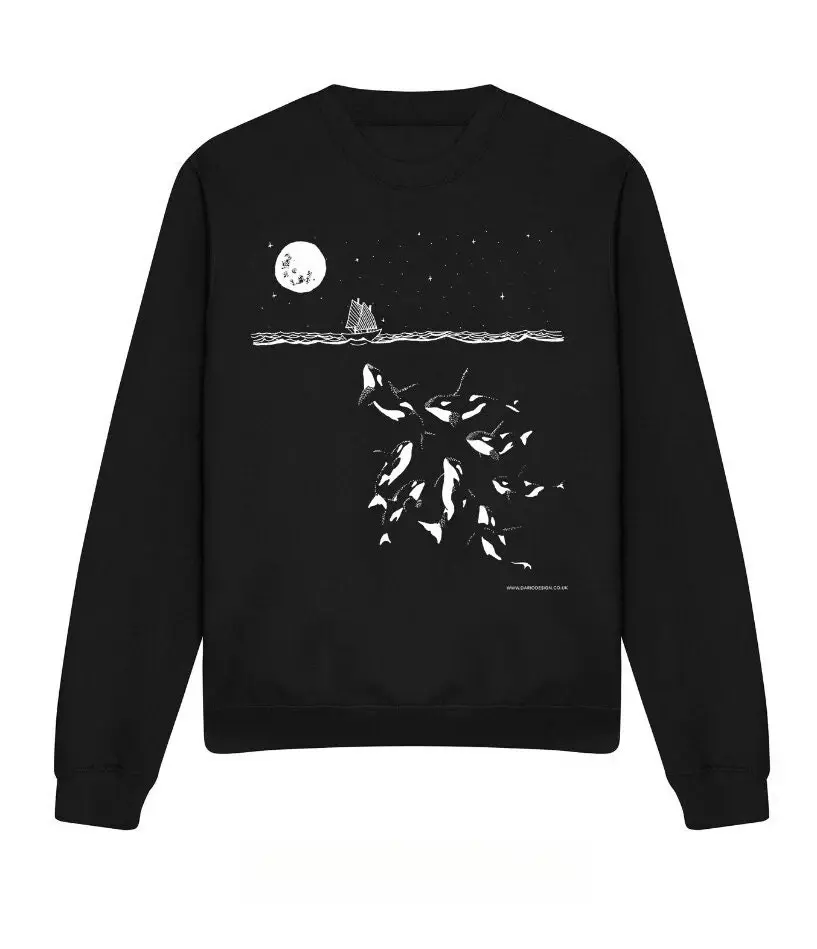 Midnight Orca Sweatshirt. Screen printed killer whale illustration