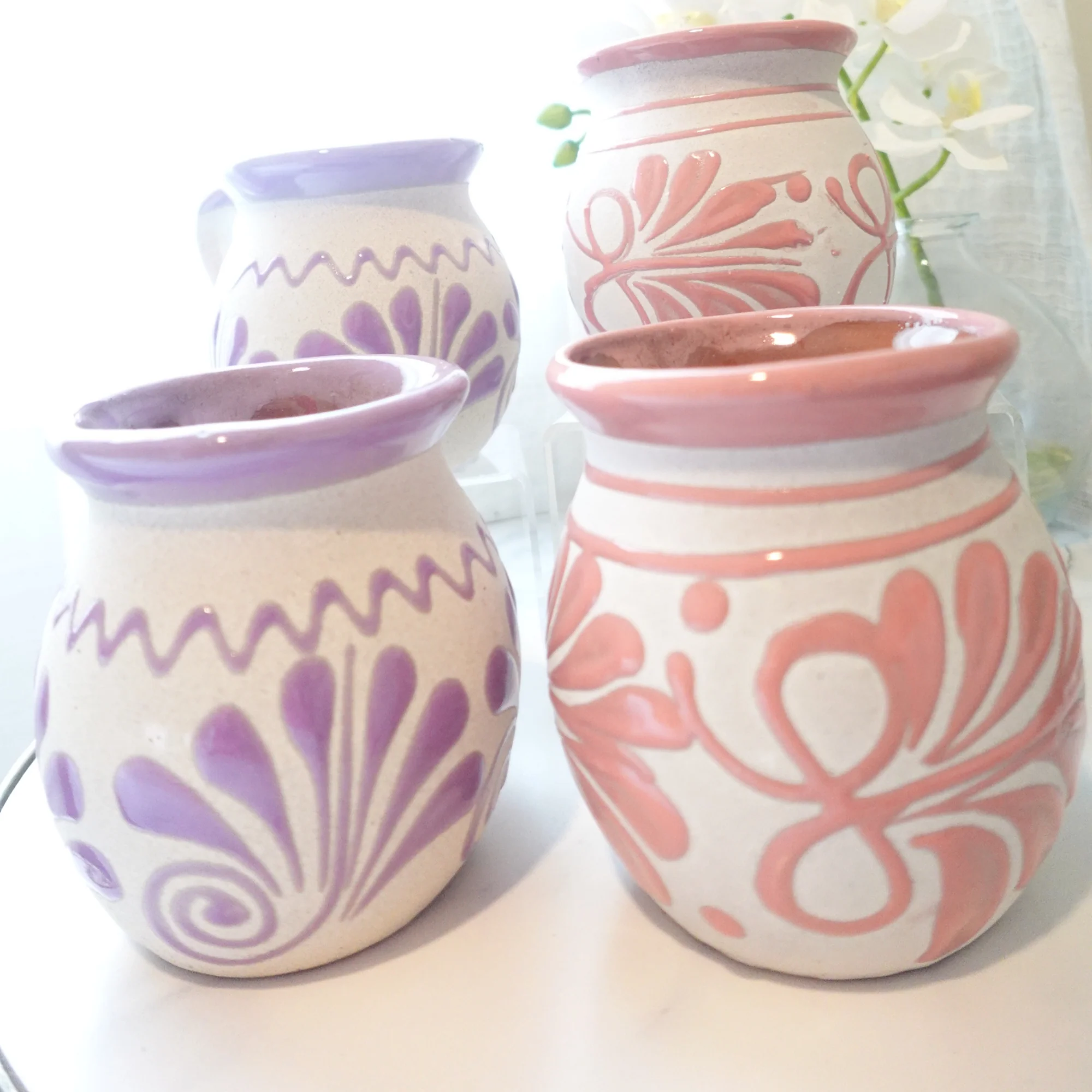 Pink and purple Mug set 2 or 4 Mexican coffee taza handmade clay, barro