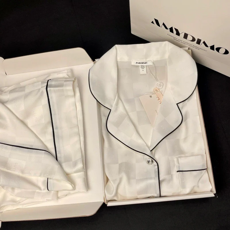 Milky White Long-Sleeved Ice Silk Pajamas